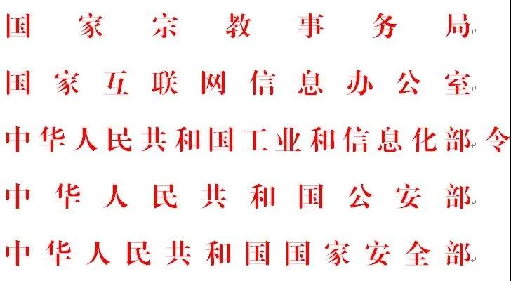 12月3日,國家宗教事務(wù)局令第17號公布了《互聯(lián)網(wǎng)宗教信息服務(wù)管理辦法》(以下簡稱《辦法》),《辦法》由國家宗教事務(wù)局、國家互聯(lián)網(wǎng)信息辦公室、工業(yè)和信息化部、公安部和國家安全部五部門聯(lián)合制定,自2022年3月1日起施行。