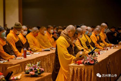 2月9日,歲在壬寅正月初九,幸逢帝釋天尊圣誕日。為感恩三寶慈光加被,感恩諸天護持,道場安和,本寺在和合精舍舉行新春祈福禮供三寶諸天法會。秋爽大和尚率領(lǐng)僧俗二眾、諸功德主、護法居士虔誠禮拜。法會現(xiàn)場施設(shè)凈食、香花、鮮果,以供養(yǎng)十方三寶及護世諸天。