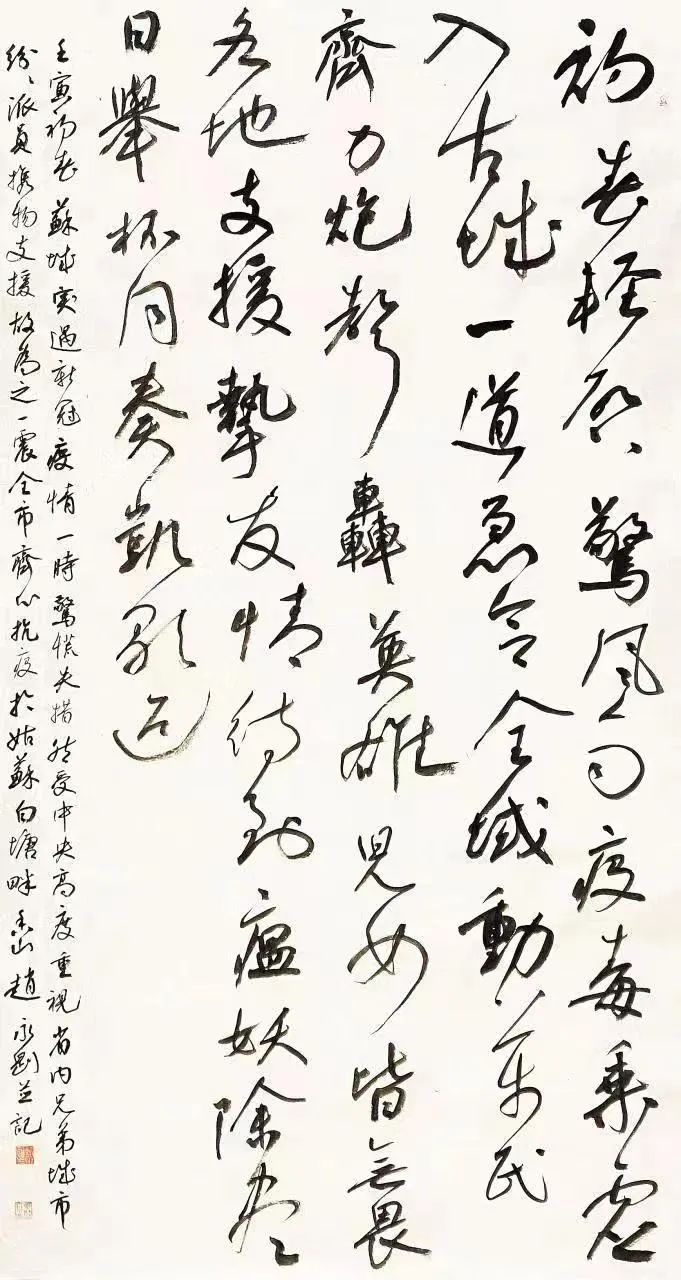 今感佩各界治疫有方,爰發(fā)愿誠(chéng)邀寒山藝術(shù)會(huì)社、寒山禪意書畫院書畫家揮毫潑墨,或以詩(shī)詞歌詠,或以山水花鳥,翰墨淋漓、丹青絢爛,集以百幅,共饗四眾。并致崇高敬意,以慰各界“抗疫”志士。藝林精妙,以墨寶傳世;叢林慈悲,以正法度人,矢之所異,的之如一也,惟愿正法永駐、六時(shí)吉祥。