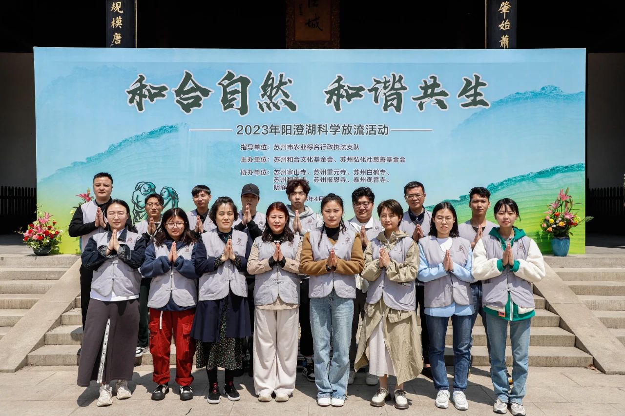 2023年4月9日,蘇州和合文化慈善基金會與蘇州弘化社慈善基金、蘇州寒山寺、蘇州重元寺、蘇州白鶴寺、蘇州積善寺、蘇州報恩寺、泰州觀音寺、明靜教院在蘇州陽澄湖舉辦“和合自然 和諧共生”科學(xué)放流活動。