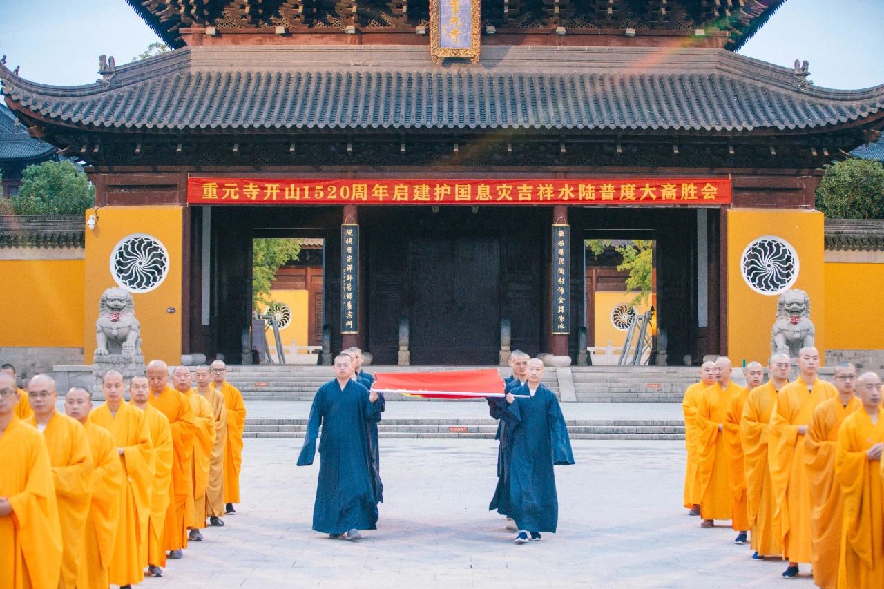 2023年10月1日上午6時(shí),江蘇佛學(xué)院寒山學(xué)院全院師生、重元寺常住法師在重元寺水天佛國(guó)廣場(chǎng)前舉行升旗儀式,熱烈慶祝中華人民共和國(guó)成立74周年。同心慶?華誕,共寄愛?國(guó)情,共同祈愿?jìng)ゴ蟮淖鎳?guó)繁榮富強(qiáng),人民幸??禈?。
