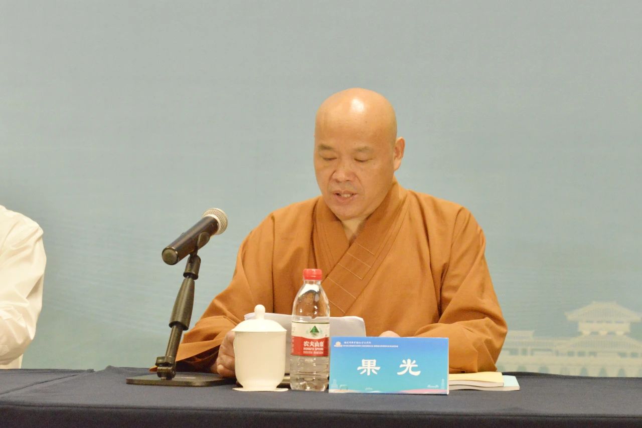 江蘇省佛教協(xié)會駐會副會長大初法師匯報江蘇省佛教協(xié)會教風建設(shè)三年行動工作,并提出下一步工作建議。