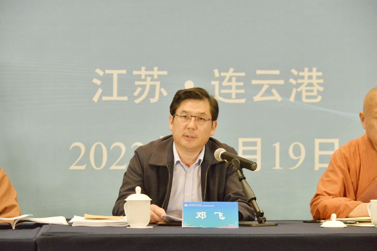 江蘇省民宗委副主任鄧飛,江蘇省佛教協(xié)會會長秋爽法師出席會議并講話。連云港市委統(tǒng)戰(zhàn)部副部長、市民宗局局長劉峰參會并致歡迎辭。