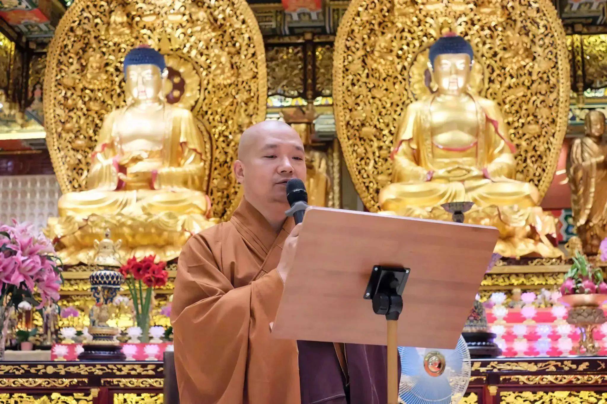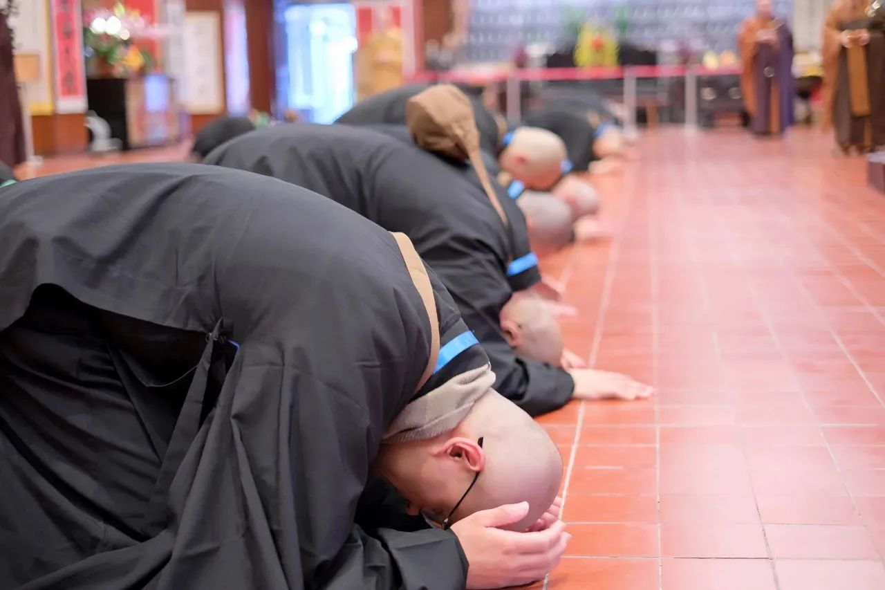 11月23日上午8時許,寶蓮禪寺鐘鼓齊鳴,龍?zhí)鞖g喜,新戒子俯伏至誠三請得戒和尚心澄律師、教授阿阇黎秋爽律師、羯摩阿阇黎明生律師。