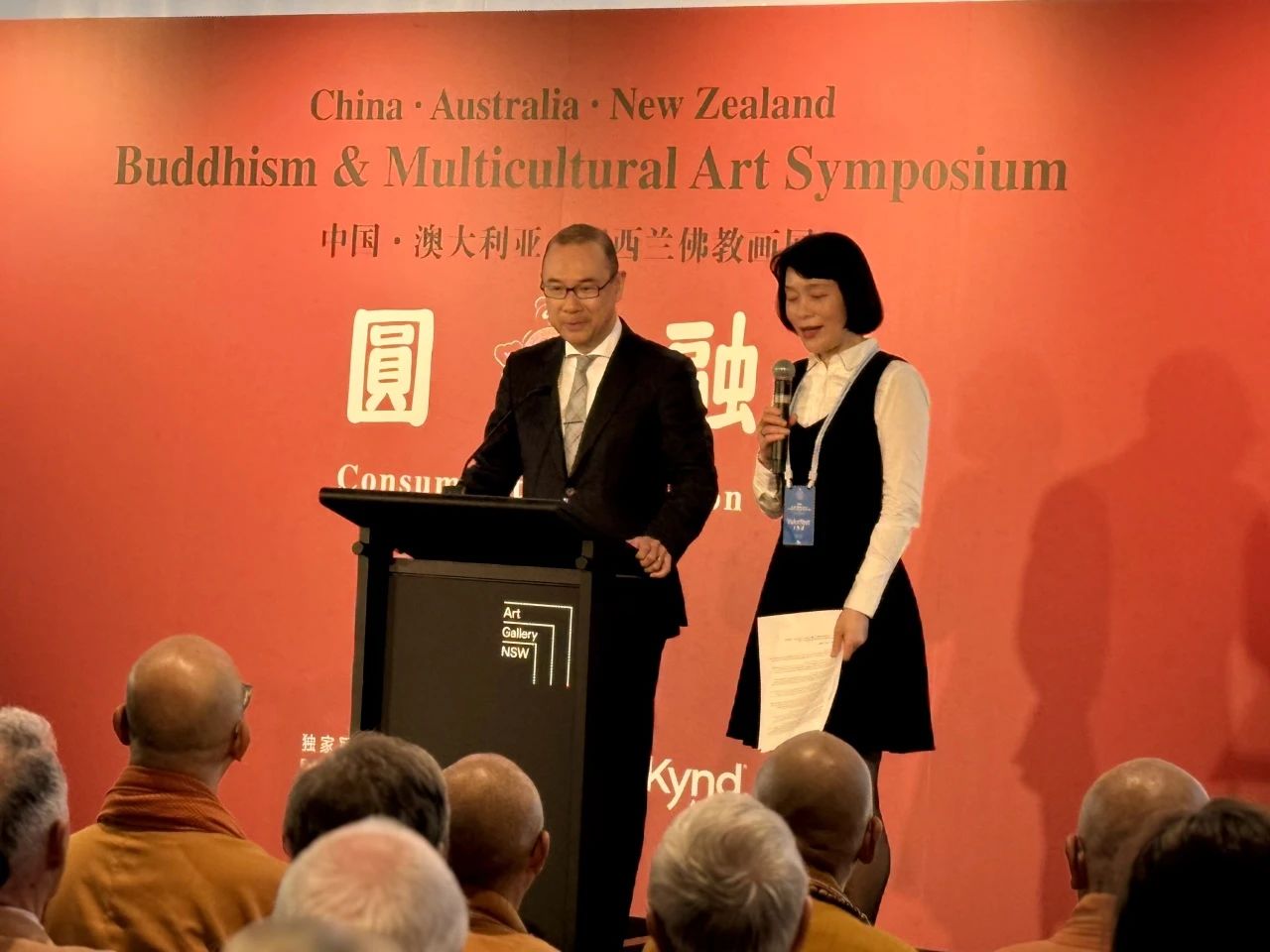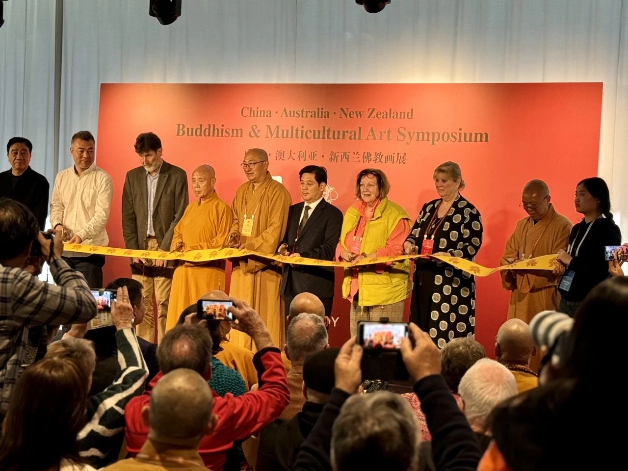 2024年8月3日,中澳新佛教論壇之“圓融——中國、澳大利亞、新西蘭佛教畫展”(以下簡稱“佛教畫展”)在悉尼新南威爾士藝術(shù)館開幕。中國佛教協(xié)會會長演覺法師,澳中佛教總會會長般若法師,江蘇省民宗委副主任鄧飛,中國佛教協(xié)會副會長、江蘇省佛教協(xié)會名譽會長心澄法師等出席開幕式。悉尼市副市長郭耀文,中國佛教協(xié)會副秘書長、江蘇省佛教協(xié)會會長秋爽法師,澳洲彩雙年展主席沃爾格及此次畫展策劃人晁鐵軍出席活動并致辭。來自中國、澳大利亞、新西蘭的高僧大德、領(lǐng)導(dǎo)嘉賓以及藝術(shù)家們參加開幕式。開幕式由江蘇省佛教協(xié)會常務(wù)副會長果光法師和Karen Chen主持。