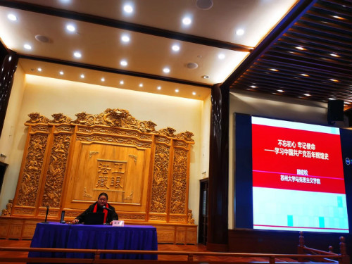 下午13時,顧宏松教授為大眾講授中國共產(chǎn)黨的誕生、發(fā)展壯大的歷史以及帶領工農(nóng)群眾進行新民民主主義革命、社會主義革命、改革開放以及取得社會主義建設偉大勝利的歷史。