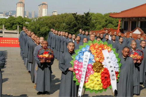 學(xué)僧代表向烈士紀(jì)念碑敬獻(xiàn)花圈