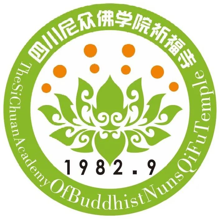 以法輪為中心,周圍圍繞八片菩提葉,象征以佛學為中心,八宗共弘,學修并重、勤修八正道的辦學理念。柔美的菩提葉右旋,象征尼眾學院的特殊風格。