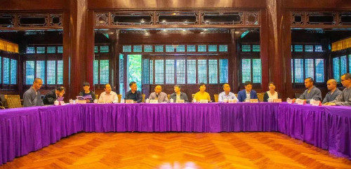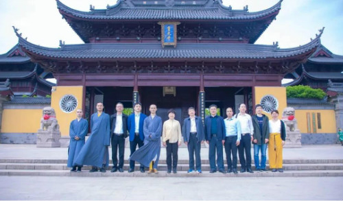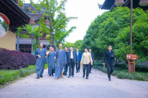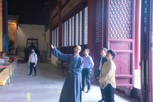 寒山學(xué)院副教務(wù)長同修法師等陪同考察團(tuán)一行參觀寒山學(xué)院辦學(xué)場地重元寺,之后在重元寺法堂座談交流。