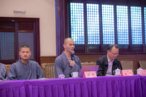 同修法師就我院辦學(xué)歷史、組織架構(gòu)、師資情況、教學(xué)情況及對外合作交流等情況做了簡單介紹。